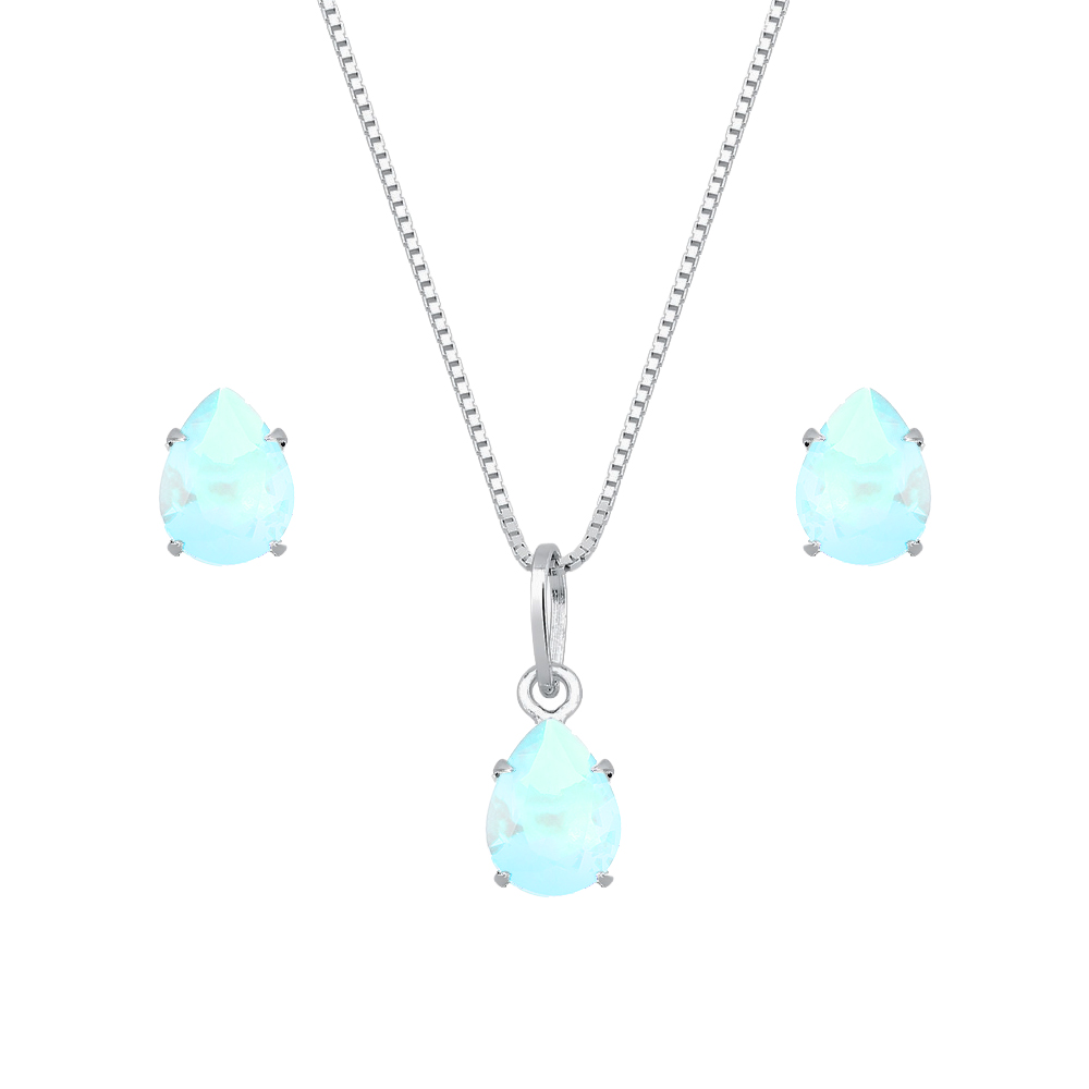 Conjunto de Gota Azul em Zircônia Prata 925